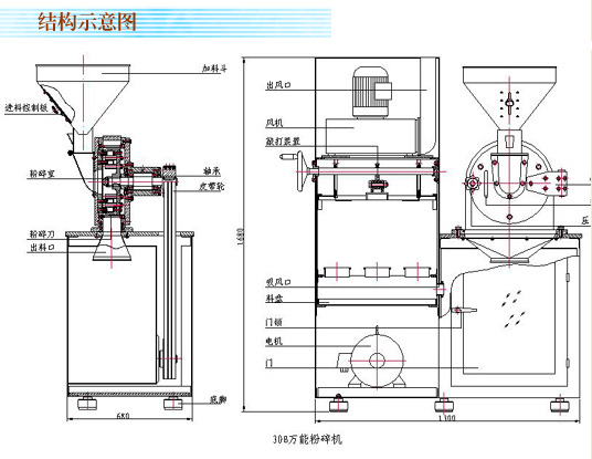 30BIV.V.VI | 100-300kg/h | 3800r/min | 10mm | 60-120目 | 5.5KW | 1.5KW |